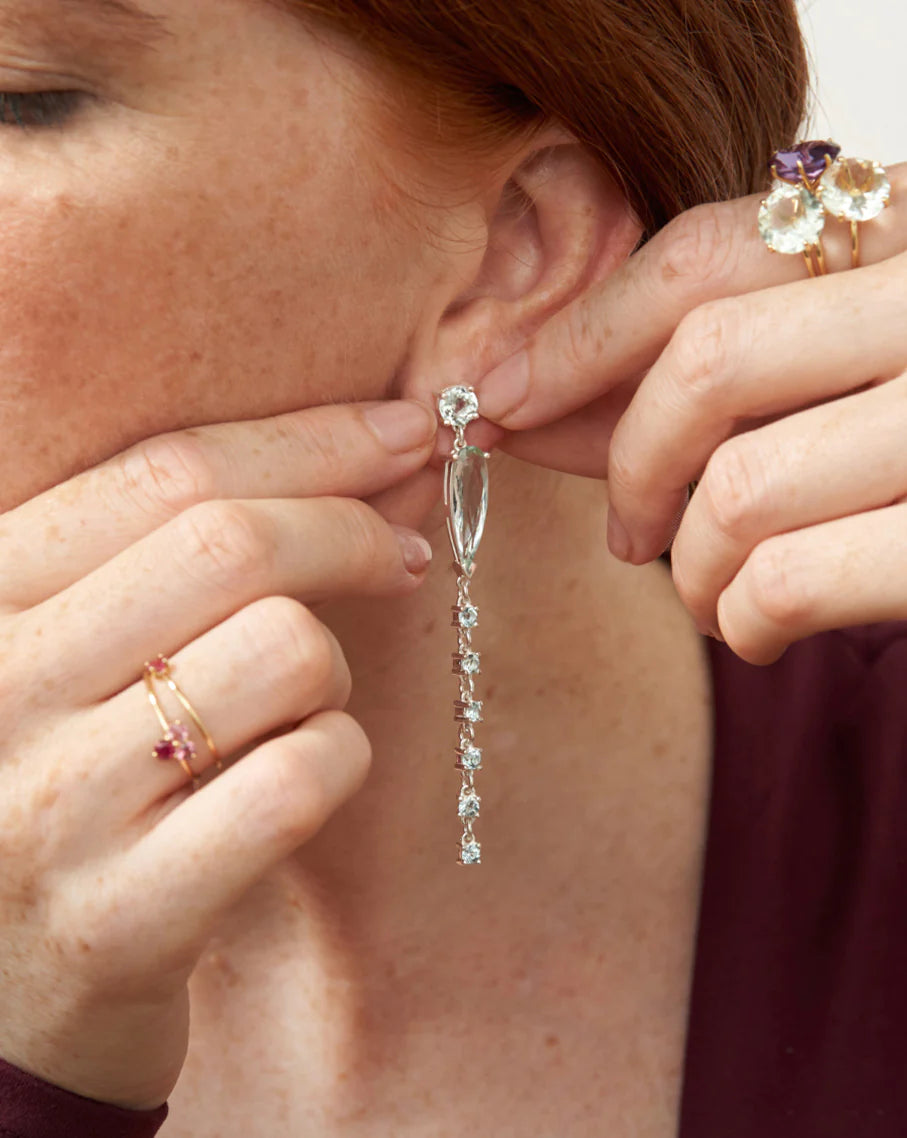 BRINCOS DE PRATA FASHION BANHADO EM OURO AMARELO 18KT E TOPÁZIO, RODOLITAS E CROMO DIOPSÍDIO