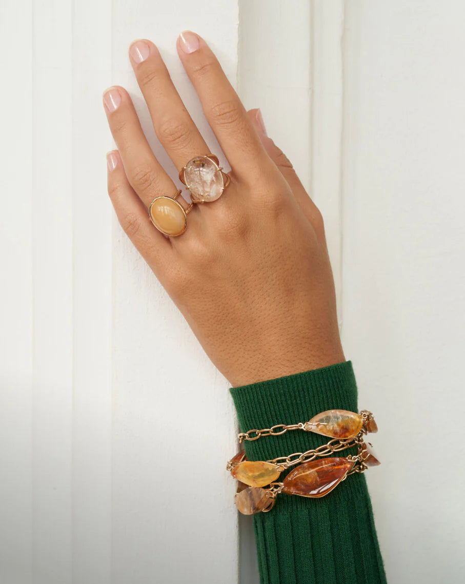 ANEL RETANGULAR DE PRATA BANHADO EM OURO AMARELO 18 KT COM PEDRA DE QUARTZO HEMATOIDE